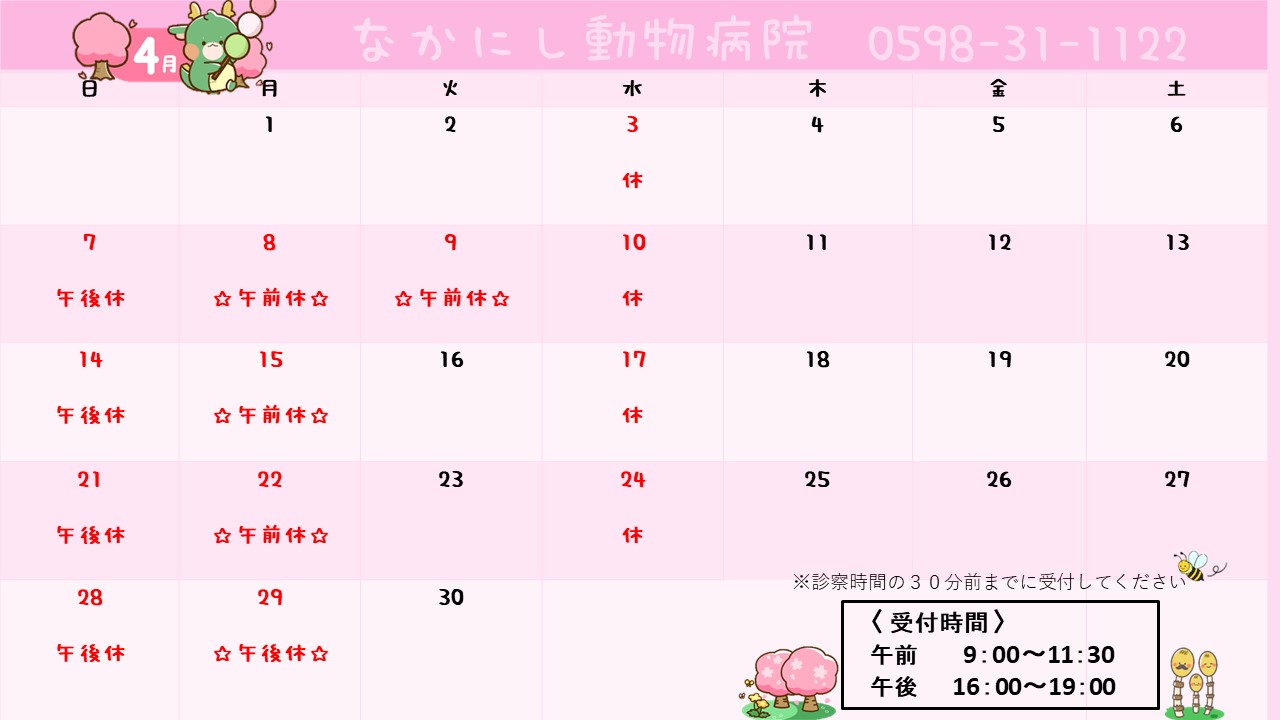 8日(月)・9日(火)・15日(月)・22日(月) 午前休診